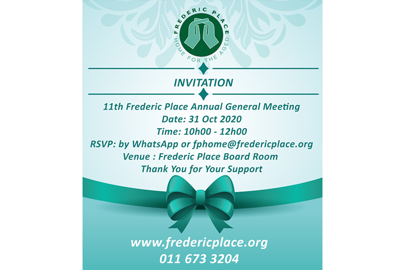 Frederic Place is home to 85 Aged and Destitute Residents. 22 of the Residents are cared for holistically in our Frail Care and are totally dependent on Careworkers for eating, bathing and dressing as well as medical attention.